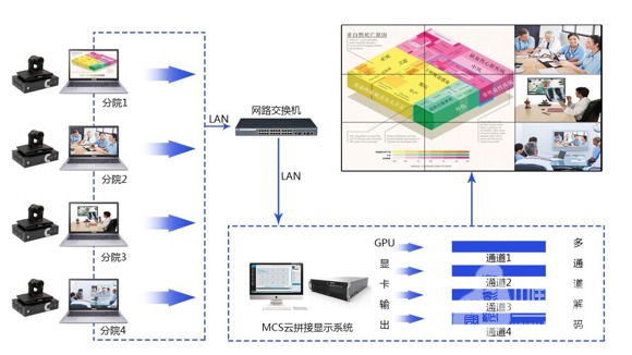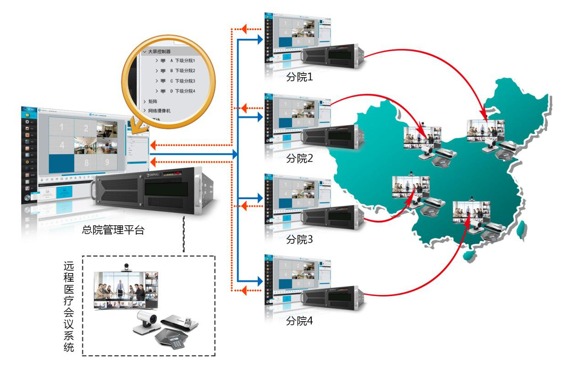 MCS云拼接顯示系統,可以根據總院與分院的聯動需求,組件全國范圍內的多點多地醫療體系管理平臺,按照權限級別開放各等級的權限控制,遇到緊急情況也可由分院平臺直接反向控制總平臺。