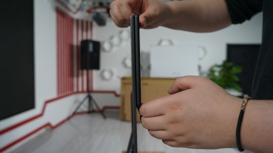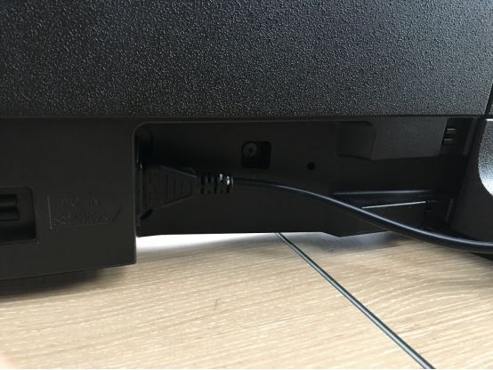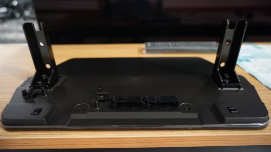 上圖可以看到電視整體呈現倒T型,下圖為底座細節實拍,其實底座只有很小一部分,從遠處看,底座幾乎不可見,這樣的設計給人第一印象十分不錯。