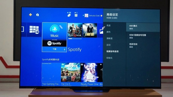 和索尼A1系列一樣,A8F也配置了專門的游戲模式,一旦連接索尼PS4 Pro該模式就會自動開啟,憑借OLED的屏幕技術和索尼4K HDR圖像處理芯片X1 進階版,在游戲模式下,A8F可以極大限度地避免畫面拖影和延遲,充分還原游戲開發者的意圖,在4K+HDR的效果下,在游玩新《戰神》以及《孤島驚魂4》等動作大作也不會感覺到明顯的延遲,相信應對其余體育游戲和休閑游戲更是不在話下。