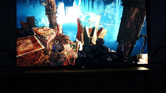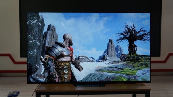 下面才是重點,就像去年我們一定會拿《地平線:零之曙光》來測試索尼A1一樣,針對索尼A8F,我們直接用上了PS4平臺頂級看家游戲新《戰神》來實測,使用的主機當然是第一時間到手的索尼新《戰神》限定版PS4 Pro。