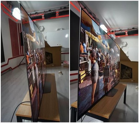 作為客廳級中心設備,電視的可視角度也是一個非常重要的指標,我們專門針對此項進行了進一步的測試,但其實從索尼A1系列的經驗來看,OLED屏在可視角度上根本不存在什么可以鉆空子的缺陷,下面是我們刁鉆的實測實拍: