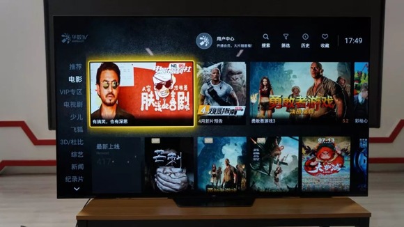 除了游戲之外,我們還試了試A8F的電視播放模式和電影播放模式,由于采用了源自索尼的X1進階版圖像處理芯片,A8F在播放普通電視節目時,依舊可以對畫面進行優化與提升。同時,采用了安卓7.0系統的A8F幾乎可以安裝市面上所有主流的智能應用,優酷的酷喵、愛奇藝的銀河奇異果、騰訊的Newtv極光、搜狐的飛狐,想看的視頻基本一應俱全。