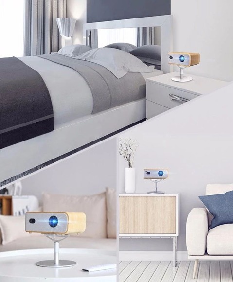 神畫Q1區別于厚重金屬風的智能投影,采用了原木質工藝+布藝的創新設計,重新定義了投影的新潮流。這一股清新簡約風讓人賞心悅目,放在家里的任何一處都能自成一道風景。