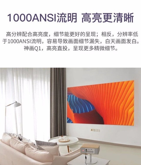 亮度高達1000ANSI流明的神畫Q1,在3000元檔投影中脫穎而出,相比抖一抖1080P,無論從清晰度還是色彩飽和度以及畫質都更勝一籌。