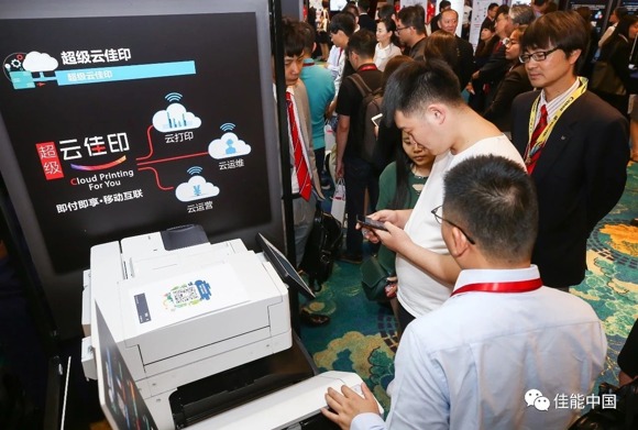 展會現場展出了“超級云佳印”自助云打印服務·解決方案!俺壴萍延 痹谧灾Ц洞蛴◇w驗方面進行了全面優化與升級,帶來移動互聯新時代下更加輕松的商務文印新體驗。用戶只需打開微信或者支付寶,掃描設備上的二維碼,按照提示完成所需的打印、復印、掃描等文印操作,付費即可實現自助文印!俺壴萍延 弊畲蠡昧宋挠≡O備,實現了資源的共享,尤其適用于共享辦公空間、機場、圖書館等公共空間的自助打印及支付場景。
