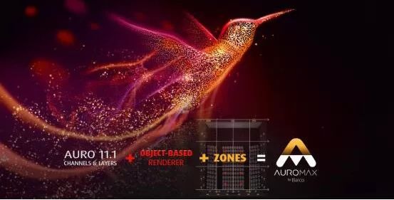 AuroMax 是在Auro 11.1基礎上研發出的新型3D沉浸音響系統,利用了現場錄音與波場合成Wave-Field Synthesis (WFS)技術,實際是屬于基于聲道與基于動態音頻對象相結合的混音方式,它可以控制一側位置不同的多組音箱逐組發出不同強度的聲響,真實的營造出從某個方位不同高度由遠及近的音效。特點是虛聲源不依賴于聽音者的位置,不會因聽音者的位置改變而造成虛聲源聲像位置的改變,從而改善最佳聽音點。