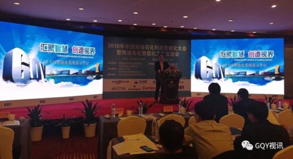 GQY營(yíng)銷部副總經(jīng)理王堅(jiān)軍也上臺(tái)發(fā)言,表示贊同三位院士的觀點(diǎn),并作了《AR-VIS智能化顯示平臺(tái)》的報(bào)告,闡述了GQY的AR-VIS可視化解決方案如何應(yīng)用于石化生產(chǎn)中,如何幫助提高石化企業(yè)的智能化水平。