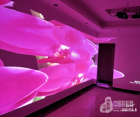 房間四周使用4臺DHN超短焦1080P全高清激光投影機,搭配迪碩-DW705純硬件融合器,進行快速邊緣融合處理,實現全景style。KTV墻通過1臺DM907,通過紅外筆實現觸摸交互,隨心點歌。整個項目進場安裝到后期調試驗收,共耗時3天。