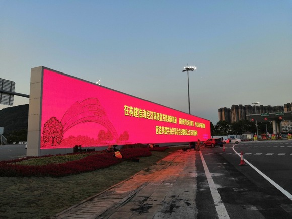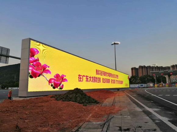 洲明新一代超輕薄廣告屏USD10顯示屏,成為了深圳鶴州收費站一道亮麗的風景線。