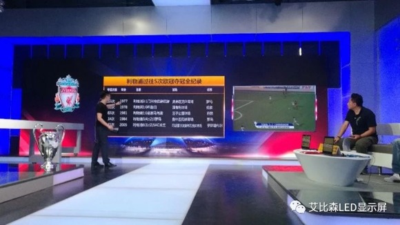 作為中國足球版權市場的“巨無霸”,PP體育將中超、亞冠、歐洲五大聯賽、歐冠、中國之隊等頂級足球賽事版權和詹俊、黃健翔、董路、蘇東在內的中國最強解說天團收入囊中。在這場世紀大戰的角逐中,手握歐冠、亞冠和南美解放者版權的PP體育徐莊蘇寧生活廣場南京演播中心,聯合艾比森打造了一個23.4㎡的高清豪華LED直播解說大屏,帶來最全面、最直觀、最專業的解說,讓用戶過“足”癮。