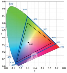從馬蹄形色域中我們可以看到,采用了HLD光源的投影機色域覆蓋能力很強,所呈現的紅、綠、藍等純色基本上都分布在色域空間的外圍,已經超出了sRGB的標準,甚至比市場主流家娛投影機的色域范圍體現還要廣,能夠真實地還原色彩。