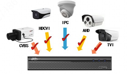 產(chǎn)品支持五種前端HDCVI、AHD、TVI、CVBS、IP五種攝像機任意接入,且支持HDCVI、AHD、TVI、CVBS自適應,實現(xiàn)互聯(lián)互通。