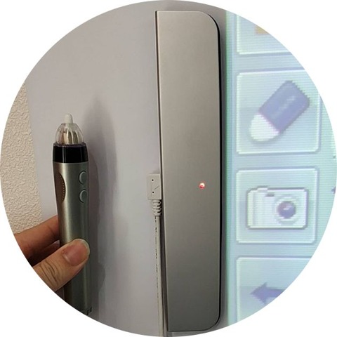 有一位外國友人對我們的一款產品感到好奇,他問為什么這個投影機下面沒有白板,難道這只是為了展現(xiàn)投影機的功能嗎?這時我們的工作人員為客戶解釋道,其實這是將超短焦激光投影機與便攜式白板來組合來實現(xiàn)交互功能的。便攜式白板是將小方盒接收器安裝在投影區(qū)域側邊中間位置,然后通過超聲波技術,捕捉電子筆書寫的軌跡,就能實現(xiàn)正常電子白板的功能了。它不僅輕巧便攜,還不會受地形影響,不論是在墻上還是在地板上,只要是平整的地方都能正常的使用。