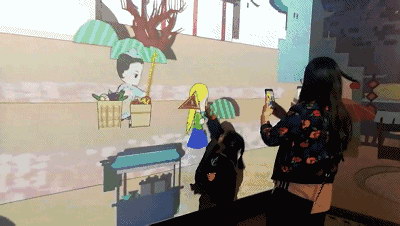 進(jìn)入“金陵盛景”,四周墻面秦淮河畔古韻悠揚、繁華市井商鋪林立,夫子廟、明代故宮、中華門、玄武湖、紫金山、瞻園呈現(xiàn)古金陵盛世氣象,仿佛置身古韻金陵、繁華盛世……這里就是數(shù)虎圖像為南京萬達(dá)樂園打造的互動繪畫『金陵盛景』!