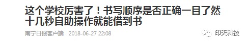 27日,南寧日報發(fā)布了一則題為《這個學(xué)校厲害了!書寫順序是否正確一目了然 十幾秒自助操作就能借到書》的新聞,南寧日報都夸厲害的學(xué)校,到底是什么情況呢。