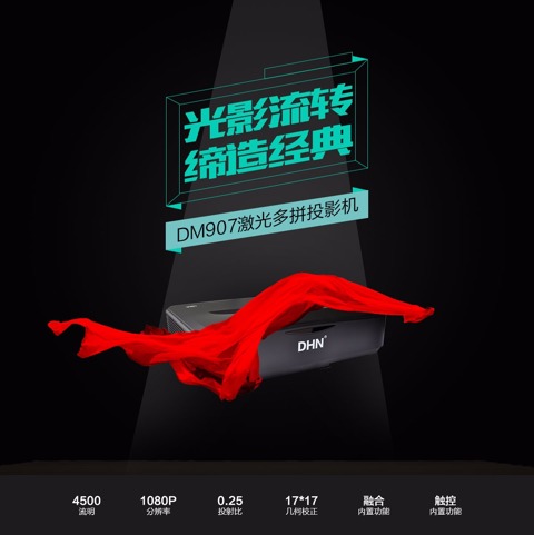 激光投影機為我們帶來的優勢已經得到了市場的認可,像學校、家庭、商鋪等地方對激光投影機并不滿足,他們更需要超短焦的激光投影機,這樣老師在講課的時候不會將手臂、身體投到黑板上,家庭影院也不必擔心因為投影機的安裝損壞裝修好的房屋,而是直接放在柜子內。DHN多拼激光投影機系DM907,就是一款超短焦激光投影機,那么,它具有哪些優勢呢?能給市場帶來什么好處呢?