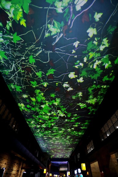 作為中國最長投影天幕街,該項目一度成為當地文化旅游的核心競爭力,震撼效果呈現讓各地游客耳目一新,稱贊不已。地下天幕街項目共使用NEC PX1004UL+激光工程投影機21臺,整屏視頻分辨率可達34500*1200,總畫面長230米,投影面積達1840平米,整個天幕效果十分驚艷,創新形態的引用無疑給商業街區帶來巨大的人流,其帶來的商業價值也是不可估量的。