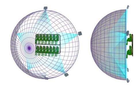 360度星空投影系統在球形穹幕上投影出完整連續的畫面。球形穹幕傾斜的穹頂將觀眾的水平視角和垂直視角都包含在屏幕畫面之中;投影出高分辨率、大視角的影像和圖像,觀眾帶來新穎的視覺體驗,讓觀眾感覺到強烈的視覺震撼和身臨其境的感覺,尤其適于表現宇宙、大地、海洋等大場面的影片。