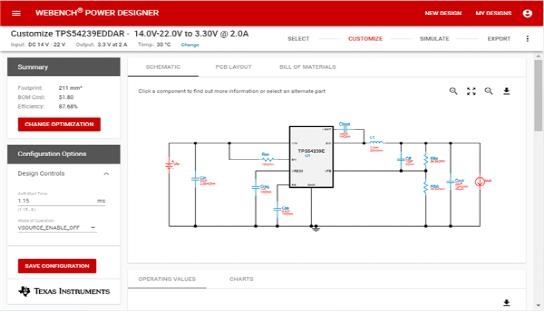WEBENCH電源設計器之前版本中的自定義、模擬和導出設計,已經從一個單一界面分成了三個新界面,并將通過邏輯步驟指導您完成電源設計流程。