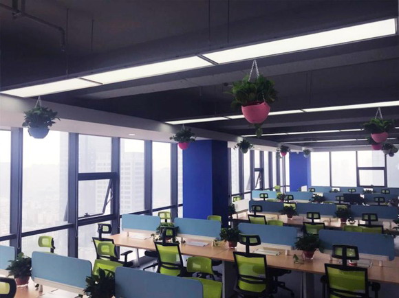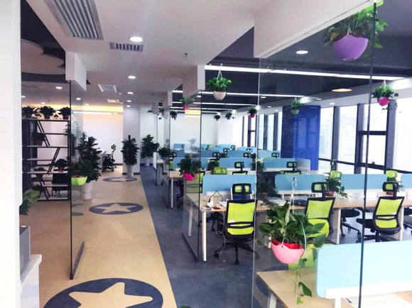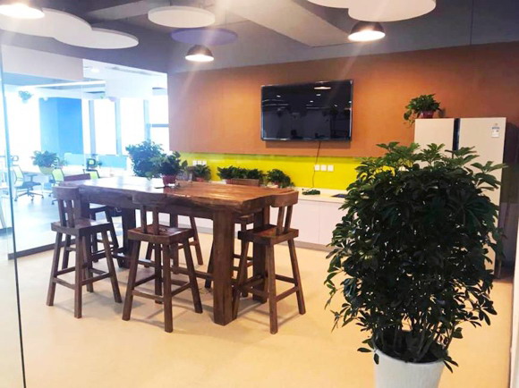 新辦公樓裝修風格沿用淳中科技總部的現代簡約風,以純凈的白色為空間打底,并局部揉入柔和的木色、活潑的綠色、靜謐的藍色,搭配相應色調的桌椅,并以綠植點綴,營造出清爽、舒適的工作環境。