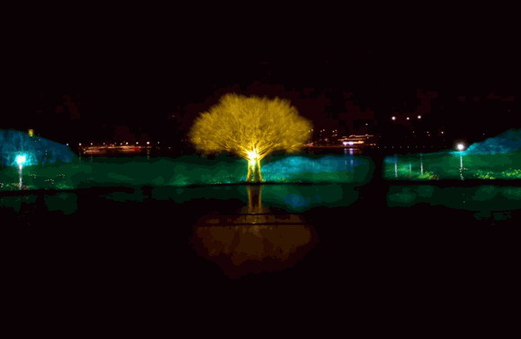 目前,白鷺湖水幕投影成功通過了吉尼斯的官方認(rèn)證,獲得全球第一大水幕投影的殊榮。據(jù)漢合天辰(廈門)科技有限公司總經(jīng)理、項(xiàng)目總導(dǎo)演羅力華介紹,“該項(xiàng)目采用了3臺(tái)NEC 40000流明4K雙色激光工程機(jī),最終實(shí)現(xiàn)了長(zhǎng)150米、高25米的水幕整體效果,總投影面積達(dá)1582平方米。”