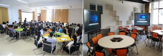 當下,大學教室正在從以講授為主的講座型空間,轉變為基于項目合作、團隊展示、自主學習、自由討論等多樣化的空間。鴻合高教“全場景互動”解決方案可以創造完全符合專業定位的未來教室——以學生為中心,桌椅靈活組合、老師自由走動、多塊顯示屏幕、畫面靈活可變、豐富終端互通、鼓勵成果分享…….