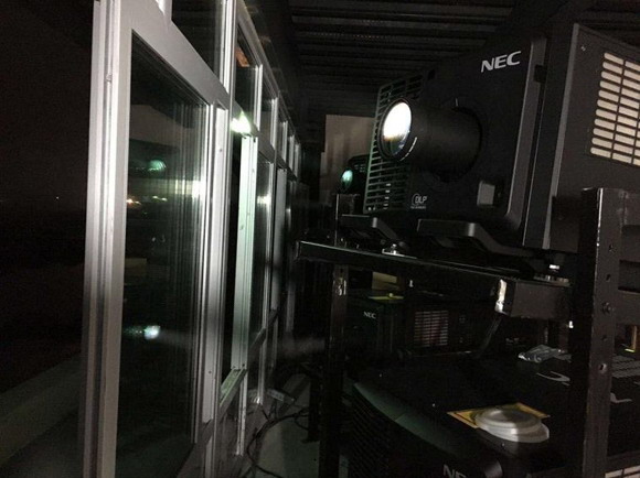 看臺兩側(cè)各安裝6臺NEC PH3501QL+工程投影機