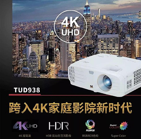TUD938分辨率為3840×2160,亮度3000流明,對比度50000:1;其采用TI高規(guī)格4K顯示芯片,搭載XPR技術(shù),可顯示830萬有效像素(3840×2160),提供更高級效果。