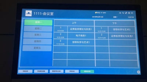 傳統(tǒng)的班牌無法實時更新信息內(nèi)容,造成了人力、物力和時間上的浪費。而艾博德智慧云班牌可以設置集中分布式管理,后臺可以自由控制每個終端,除了日歷、天氣等公共信息以外,還能進行智能化課表展示,實時顯示多媒體教室的使用情況和課程情況。方便學院老師的日常課程安排。