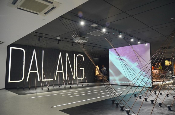 步入大浪時(shí)尚小鎮(zhèn)展廳,第一個(gè)展項(xiàng)頗具藝術(shù)氣質(zhì),兩側(cè)絲線集束,居中1臺(tái)VPL-F430HZ呈現(xiàn)服飾起源,畫(huà)面包括史料照片與工筆國(guó)畫(huà),講述服飾“御寒、遮羞、護(hù)體、審美”發(fā)展歷程。