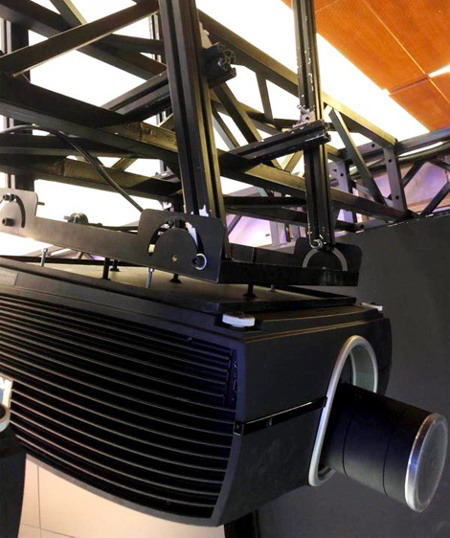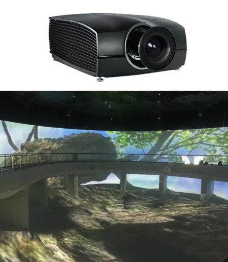該項目由影鈦創(chuàng)新科技(北京)有限公司完成,采用了公司代理的42臺高清高亮度的BARCO F90-W13激光投影機,該款投影機亮度高達13000流明,動態(tài)對比度高達50000:1,激光光源壽命長達60000小時,每幅畫面達到10×6.25米,配合各種實時動態(tài)場景,能夠讓參觀者沉浸在忘我的實際場景之中。