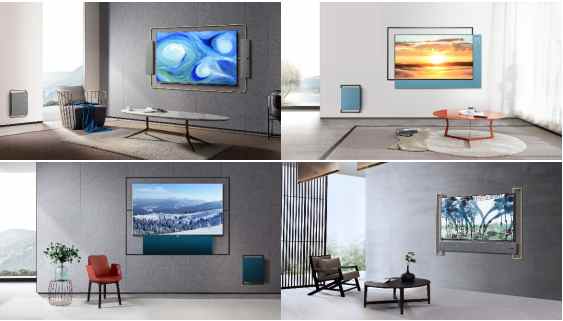 XESS浮窗全場景TV擁有立體美學、裝飾美學、新造型美學、東方美學這四大藝術外觀,能適應北歐、新中式、美式鄉村等多種家居風格,即便是一面白墻也能裝點得藝術感十足。讓用戶不必再為電視背景墻的設計而苦惱,也不用在擔心與電視風格不搭而失去美感。