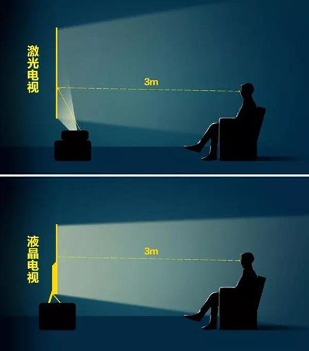 庫帕激光電視研發人員也用通俗易懂的語言向記者解釋了該原理。激光電視與液晶/OLED電視相比,激光電視的光線經過白墻或幕布二次反射進入人眼,更像是自然光環境下的觀感,光線柔和不刺眼,120英寸的大畫面兩米視距下也不會有壓迫感。反觀傳統液晶/OLED電視,人眼正對著發光屏幕,大面積屏體光線直接映入眼簾,而且還伴隨著高亮顯示、頻閃刷新等問題,長時間觀看會出現明顯的眼痛,眼干澀問題。