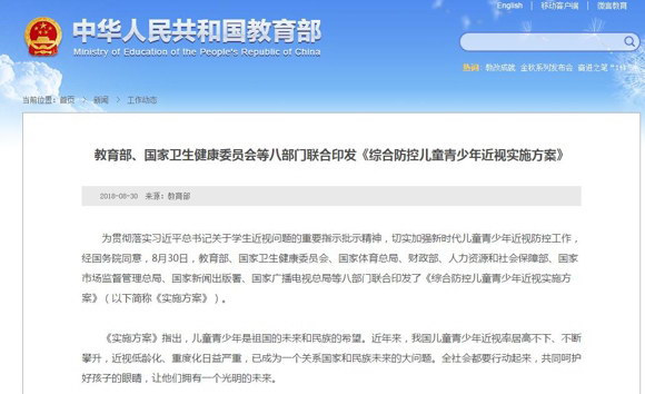 就在教師節前夕,教育部、國家衛生健康委等八部門聯合印發了《綜合防控兒童青少年近視實施方案》(簡稱《實施方案》),切實加強新時代兒童青少年近視防控工作。兒童青少年近視問題是關系到民族體質健康的問題,關乎民族復興和國家前途,各級人民政府為防控兒童青少年近視提出了明確的階段性目標,倡議和推動全社會行動起來,共同呵護好孩子們的眼睛,這也將在全社會形成廣泛共識。