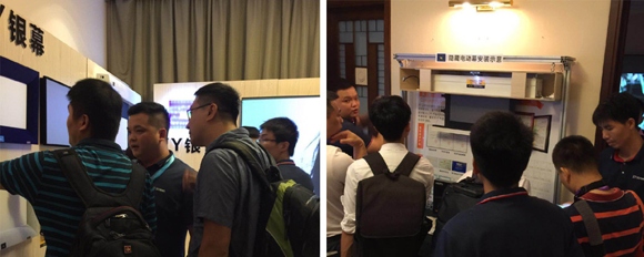 9月14日正式開展, XY銀幕一開展就客商如潮, 黑晶抗光幕表現驚艷全場,小編帶大家到現場感覺熱情氣氛: