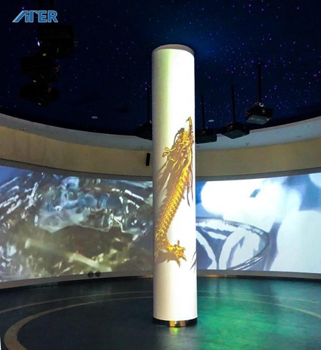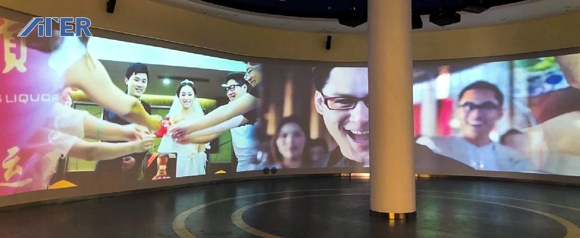 展示區(qū)弧形大屏幕采用8臺(tái)高清投影機(jī),借助ATER派克融合器AGP-P-300完美消除投影融合帶,完成33米*4米的投影融合,實(shí)現(xiàn)了超大畫面無縫融合顯示,完成酒文化生動(dòng)形象地傳達(dá)。AGP-P-300使用一路用單口即可采集8K*1k的超高分辨率,并且能實(shí)現(xiàn)等比點(diǎn)對(duì)點(diǎn)畫面展示,讓圖像視頻呈現(xiàn)更逼真細(xì)膩。另外,采用一體式融合器AGT-IT 實(shí)現(xiàn)的2*2投影融合,可完成180度半圓柱體投影融合效果,進(jìn)一步提升視覺體驗(yàn)。隨著4K逐步普及和8K興起,人們對(duì)圖像清晰度和顯示流暢性的要求也越來越嚴(yán)格,而該系統(tǒng)可輕松升級(jí)到4K/8K超高清系統(tǒng),從容跟上視聽領(lǐng)域的發(fā)展潮流。