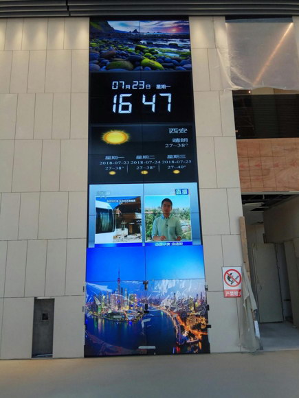 德普視訊MCS云拼接處理器是DEPULL最新一代的多屏處理系統,該系統與傳統處理器的最大區別在于它是一種全數字化的并行架構處理系統,信號在傳輸和顯示過程中以數字量的形式存在。此次,MCS云拼接處理器主要完成西安匯城國際展廳日常播放高清宣傳片、天氣預報、時鐘、日歷、消息通知等。