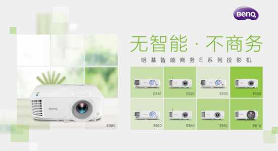 明基智能商務E系列投影機,細分不同分辨率規格的產品,從XGA分辨率的E610到1080P分辨率的E580完整覆蓋,滿足不同商務空間需求。