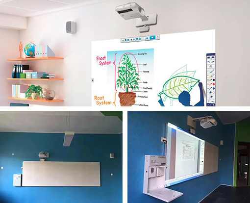 在信息化、科技化日益發展的今天,投影機在日常教學中的運用越來越頻繁。相對于傳統的幕布+黑板組合,無塵互動教學解決方案既解決了播放課件時幕布占據較大黑板面積的問題,又避免了使用粉筆教學擦黑板時帶來的粉塵污染。