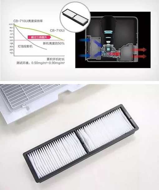 在課堂沒有完全進入全觸控時代的今天,“粉筆黑板+投影”的組合,仍是教師最主要的授課模式。除了對教師學生的健康造成危害以外,粉筆板書產生的大量粉筆灰,也讓教室里的投影機望“塵”生畏。投影機內部光學部件若附著的灰塵過多,就會導致投影機亮度的降低,甚至還可能導致投影機故障。因此,選擇課堂教育投影機,必須充分考慮其防塵功能。愛普生擁有專業、高效的防塵技術,能有效減少灰塵對投影機內部元件的污染。