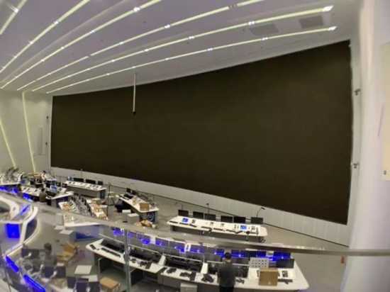 新的巨型LED顯示屏不僅實現了廣闊的展示視野 ,而且整屏無色差、無光學拼縫、亮度可根據環境需求任意調整 ,極大地升級了指揮中心的視覺體驗。超薄的屏幕厚度 ,使得整個屏體安裝位置較以前大幅后移,給指揮中心提供了更大的人員工作區域,為指揮中心的席位改造優化提供了豐富的空間 。整屏由洲明UHP系列產品共1152個箱體 組成,超過1.698億個像素點 ,有效地保障了項目應用及未來對于高清、4K和可視化 等顯示內容的像素延展需求。