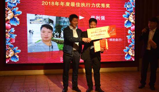享受豐盛晚宴,年會高潮來了。秦文君董事長為了感謝全體員工2018年辛苦付出,拿出了豐厚的獎金和禮品回饋給大家。