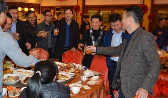 年會盛典,歡宴共聚,舉杯暢飲!秦文君董事長帶領公司高層領導向來賓敬酒