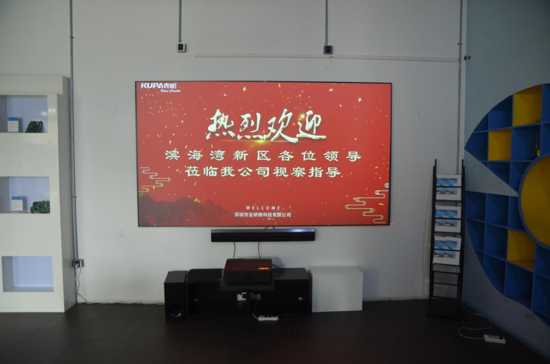 考察期間,庫帕總經理謝源向濱海灣新區總經濟師一行介紹了庫帕激光投影顯示項目的產品線規劃、產業形態以及當前全球產業鏈情況,謝源先生稱庫帕在激光投影顯示上下游布局較早,在激光投影光機、整機方案設計上處于行業領先地位。