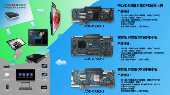 深圳市愛鑫微電子有限公司推出帶Vbyone、Lvds點(diǎn)屏方案的OPS轉(zhuǎn)接小板新品,主要是配合愛鑫微電子的OPS電腦產(chǎn)品應(yīng)用于會(huì)議一體機(jī)、廣告機(jī)、電子課桌、觸摸查詢一體機(jī)、教育一體機(jī)等相關(guān)的顯示設(shè)備中。產(chǎn)品在新的平臺(tái)上延續(xù)愛鑫微一貫的風(fēng)格和理念,性能與需要匹配的精神。