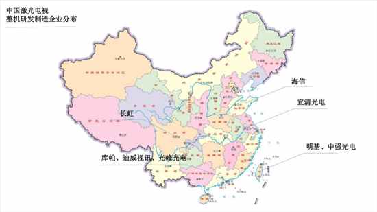 整機(jī)研發(fā)制造企業(yè)主要分布在西南、深圳、長三角、臺(tái)灣地區(qū),有深圳庫帕、長虹、光峰光電、宜清光電、迪威視訊、明基、中強(qiáng)光電;品牌商參與者眾多,如PPTV、暴風(fēng)、堅(jiān)果、極米、國美、長虹、小米、庫帕等,值得驕傲的是我國激光顯示技術(shù)基礎(chǔ)堅(jiān)實(shí),產(chǎn)業(yè)鏈基本完整,并且全球激光投影產(chǎn)業(yè)化程度增高,市場參與者眾多。