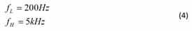 要將所需通帶中的衰減從300Hz降至3kHz,請將上(fH)和下(fL)截止頻率設置在所需帶寬之外(公式4):