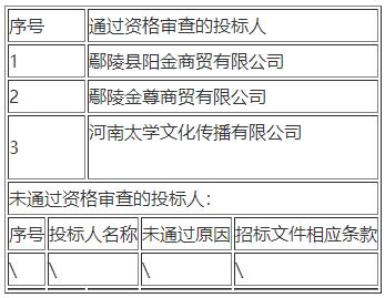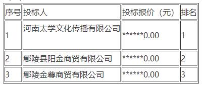第一中標候選人:河南太學文化傳播有限公司投標報價:******0.00元 交貨期:簽訂合同后15 日歷天內