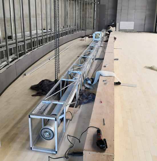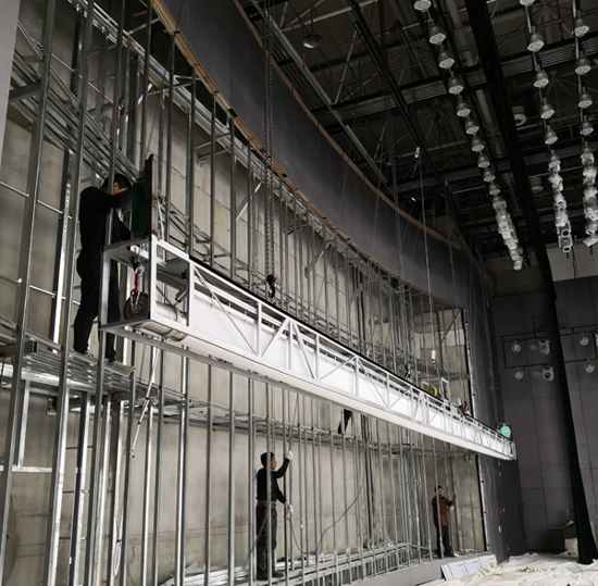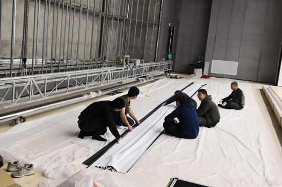 XY銀幕技術(shù)工程師齊心協(xié)力吊起UC3大型下卷工程幕