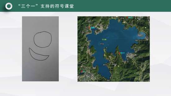 我們老師現在教學借助這樣的一張照片,我們老師可以帶著學生結合剛才的文本,在老師的引領下學生借助多媒體直觀的地圖照片,孩子就能理解日月潭為什么叫做日月潭。